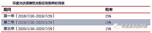 7月16日,印度贸易救济总局(DGTR)提出,建议对进口电池片及组件征收两年的保障措施税。2018年7月30日,印度财政部税务局正式宣布:根据印度贸易救济总局提出的最终建议,自7/30起对中国、马来西亚及其他发达国家的太阳能电池(无论是否封装为组件)征收25%的保障性关税,但是此举本身受到印度业界的抗议和抵制,印度财政部于当地时间8月13日暂缓征收上述防卫性关税,被暂缓实施并不意味着印度保障性关税取消,根据印度媒体MERcom India报道,9月10日,印度最高法院裁决了对包括中国在内的光伏企业征收25%的进口关税,保障税的征收将提高印度光伏电站的建设成本,对印度的光伏项目发展产生负面影响。