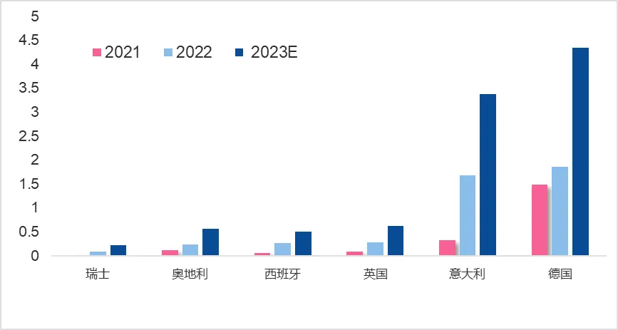 巴西政府出台新法规,巴西现有分布式电站及2023年前建成的电站(低于5MW)将享受税收减免;巴西2023年4月新增装机1124MW,同增74.81%,预计电站装机量会集中爆发在这两年。