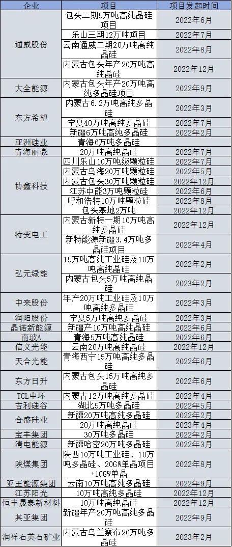 据统计,受2022年硅料价格上涨的影响,各硅料企业包括通威股份纷纷扩产,2022年大约137万吨的扩产规模。