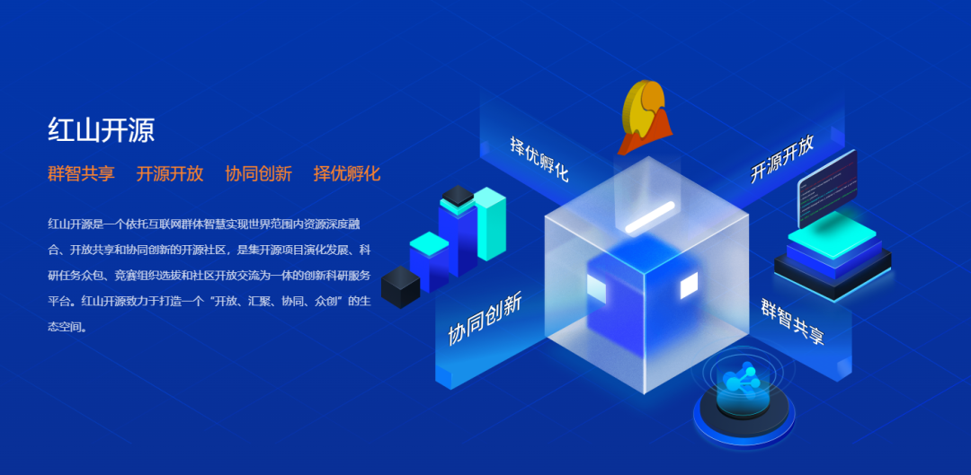 作为非营利综合性在线科研协同创新平台,红山开源以国家重大战略科技需求为牵引,重点依托开源攻关、创客行动、开放竞赛三种典型创新组织模式,为战略科技领域技术创新突破、成果遵选转化提供全面支撑。