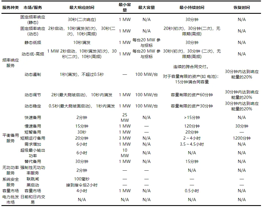 ,且英国还在根据电力系统的变化不断探索新的服务品种,为储能参与电力市场提供了多种可能性。
