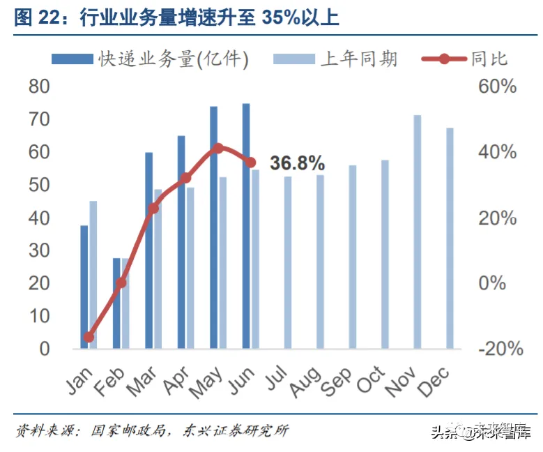 回到我们的观点,价格战的烈度与其要达到的战略目的直接挂钩:今年由于疫情影响,所有公司除了顺丰, 从 3 月开始都是一个关机重启的状态。经历了一个多月的服务断档,整个电商件市场面临一个地盘重新划分 的危机;快递行业本身较大产能的冗余更是加剧了市场的混乱状态。在客户关系恢复到一个相对稳定的状态 前,各企业必须要拼尽全力维护自己的客户资源,否则很容易面临市场份额下滑的危机。这才是今年价格战 在 3 月到 5 月间愈演愈烈的主要原因。而随着客户关系的恢复,市场逐渐恢复稳定,价格战在 6 月开始降温。