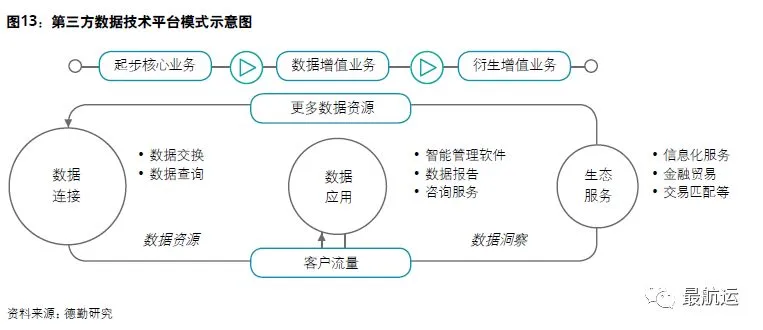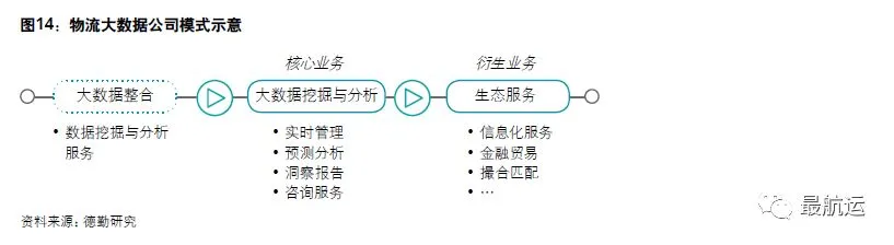 • 科技与数据企业专注于物流活动支持,是行业的赋能者,持续支持行业的智能化发展。这类企业未来将依靠数据连接与沉淀向物流组织活动服务深度延伸。深化大数据分析挖掘技术,构建差异化的科技/数据产品与解决方案是这类行业的立身之本。