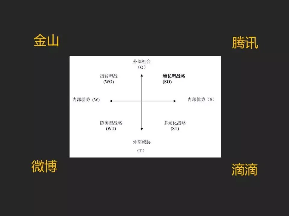 滴滴的优势和威胁也是非常明显,租车市场多元化业务拓展,摩拜的一公里交通潜在威胁。