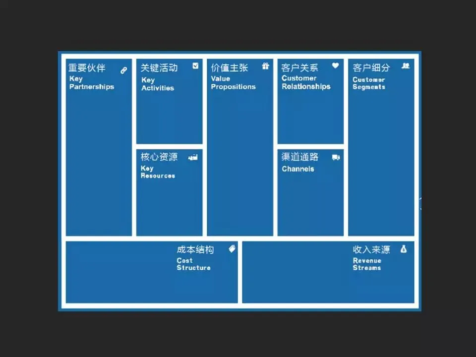 没错,商业画布就是一张布,不是H5的canvas,是一张可以一直刻在你脑海里的商业canvas,它可以在你随时遇到疑惑时,投影在你的眼前,帮助你去分析解决问题的canvas。