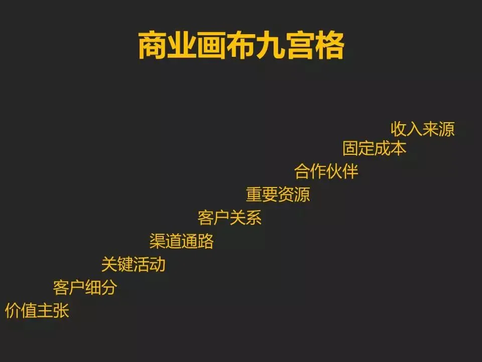 在工作和生活中的应用我们耳熟能详,同样在商业画布中,九宫格模块分析同样能够帮你理清思路,分析商业模式或个人定位。下边我们就针对商业画布的每一个模块做一下介绍以及对应的案例分享。