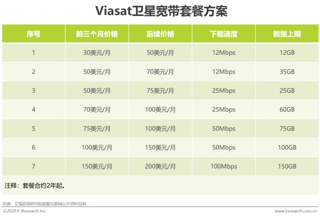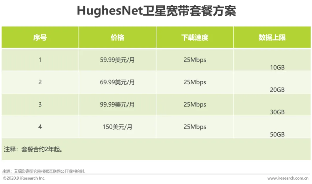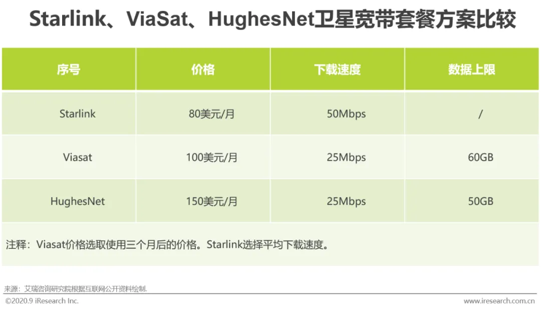 Starlink系统容量远大于卫讯与休斯网络,可以在数据上限不做出限制(或将数据上限调高),假设Starlink最终下载速度定于50Mbps,且价格定于80美元/月,那么Starlink在价格方面有非常大的竞争优势。