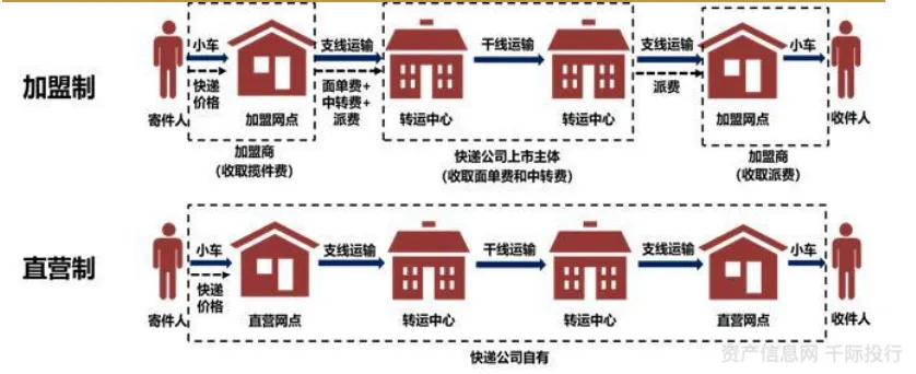 图 快递公司的两种商业模式——加盟制与直营制