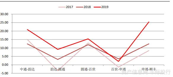 图 各公司近三年业务量差距(亿件)