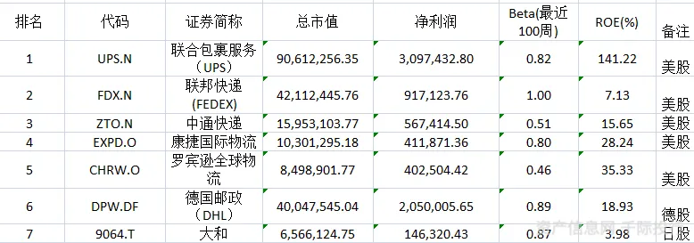 图 全球物流快递上市公司