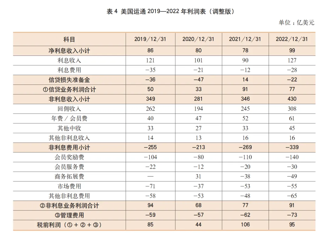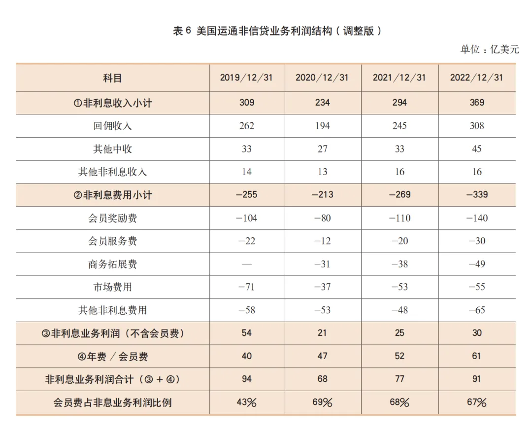 对表6进行分析,关于美国运通的非信贷业务,可以得出以下几个结论。