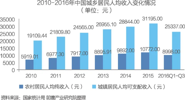 2016年前三季度,全国居民人均可支配收入17735元,同比名义增长8.4%,扣除价格因素实际增长6.3%。
