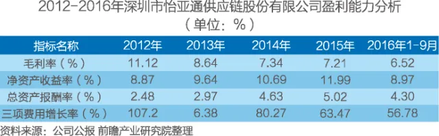 2016年前三季度,公司毛利率、净资产收益率、总资产报酬率和三项费用增长率分别为6.52%、8.97%、4.30%和56.78%。