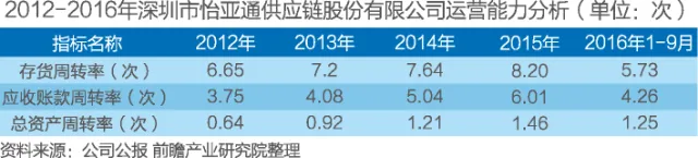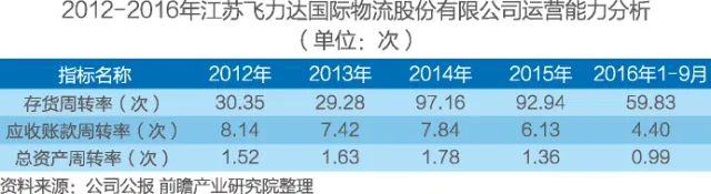 2016年前三季度,公司存货周转率、应收账款周转率和总资产周转率分别为5.73次、4.26次和1.25次,均处于较高水平。