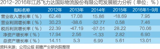 2016年前三季度,公司营业收入增长率、营业利润增长率和税后利润增长率分别为7.95%,7.46%,70.06%;净资产增长率和总资产增长率分别为6.90%和13.01%。