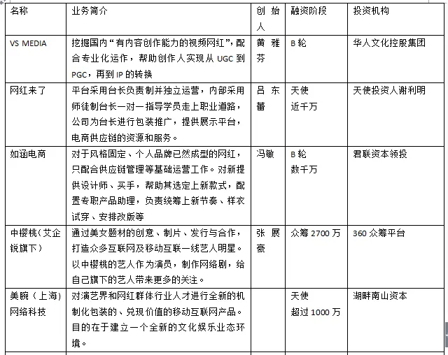 下面是一些网红经纪公司的融资情况,摘录自我们出品的《网红经济学》哦。