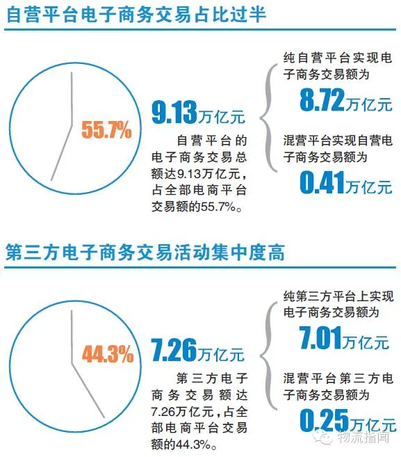 国家统计局8月发布的调查数据显示,我国全社会电子商务交易额达16.39万亿元,同比增长59.4%。其中,在企业自建的电商平台(简称“纯自营平台”)上实现的交易额为8.72万亿元,同比增长65.9%;在为其他企业或个人提供商品或服务交易的电商平台(简称纯“第三方平台”)上实现的交易额为7.01万亿元,同比增长53.8%;在既有第三方又有自营的混营平台(简称“混营平台”)上实现的交易额为0.66万亿元,同比增长41.1%。