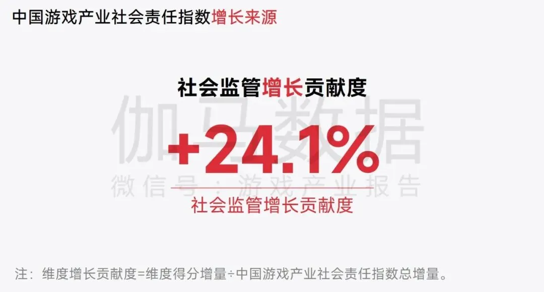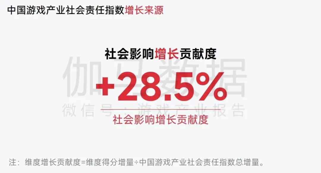 构成产业指数的四项维度中,社会服务、社会影响、社会监管三个维度的贡献更为明显,这主要由于社会层面对游戏产业的要求日益提升,产业也主动提升社会责任层面的布局意愿,并在文化、科技等领域展现出较高的履责潜力,进而成为上述维度贡献度更高的主要因素。社会价值的增长贡献也为正值,但相对有限,商业收入下降带来的连锁反应使得贡献难以像往年一样快速提升。
