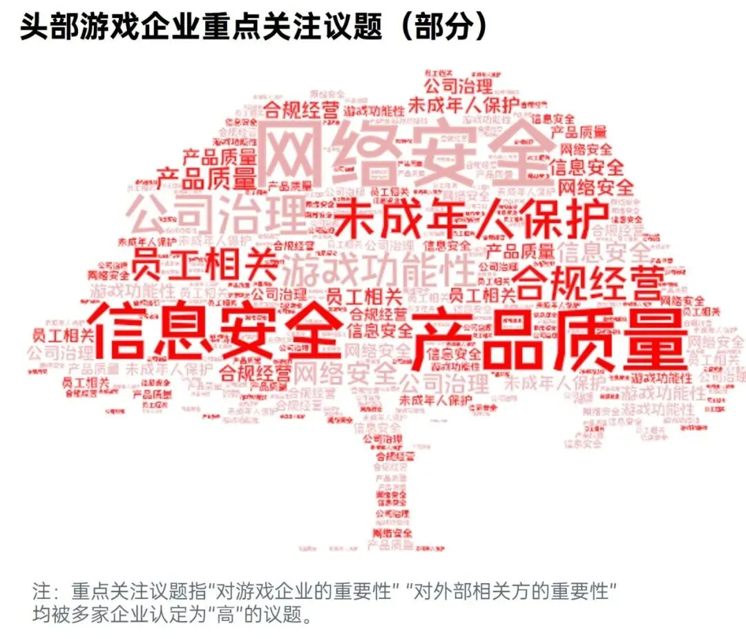 近年来,中国游戏产业的履责意识出现了明显的迭代升级,主要体现在三方面:第一,由相对松散的公益事件向更成体系的计划转变,例如部分企业将原有单独事件整合成多项垂类计划;第二,社会责任的履责方向更为透明、可持续,例如更多企业披露社会责任报告,且与企业生产经营结合更紧密,或将依托经营目标与履责目标的趋同,强化后者效果;第三,企业高层的重视度较高,CEO、总裁、董事会级别的管理者通常是方向的制定者甚至直接负责人。同时,履责意识迭代升级的成果也较为可观,被认定为在企业及社会层面均具有高重要性的多个领域,已经取得明显转变。信息安全等尚未完全满足社会期望的领域也有所进展,而升级后的履责意识有望加速上述领域的转变、落地。