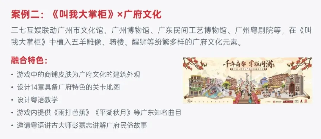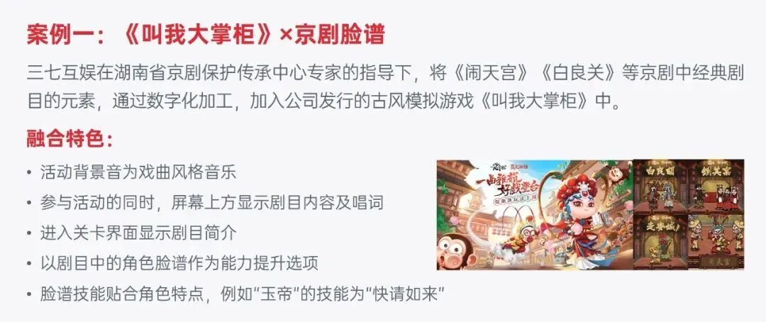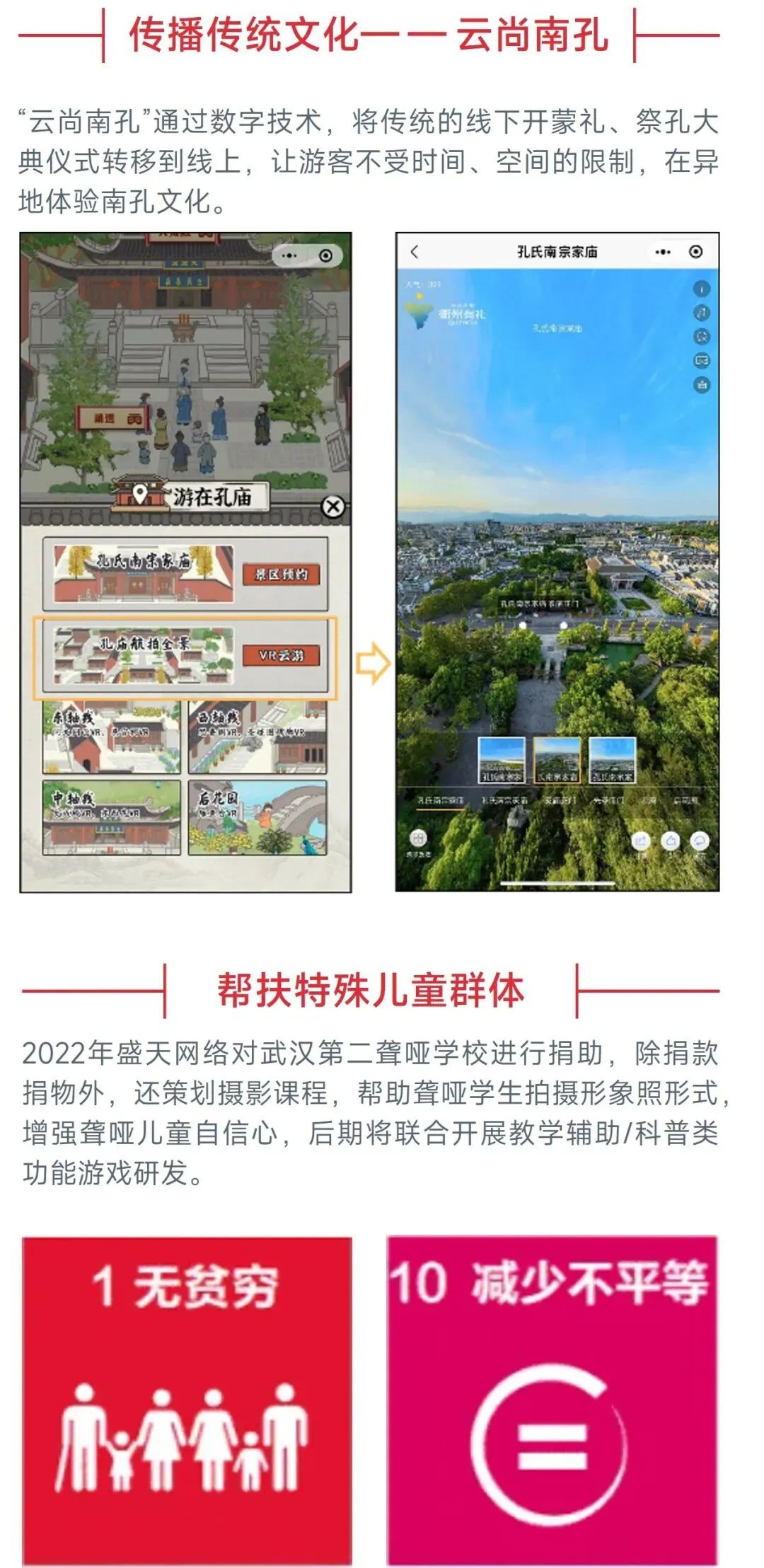 数实融合在游戏产业的履责过程中得到进一步应用,现阶段主要在两方面表现较为突出。一方面,以游戏为载体,将传统文化、名胜古迹等内容以数字形式展现,但区别于早期的融合方式,现阶段融合的游戏性设计更为成熟,技术运用更也为丰富,使得用户获取奖励的路径与感知文化的路径重合度较高,进而提升用户体验以及对实体经济的赋能能力;另一方面,将企业经营过程中的技术积累拓展至实体,帮助实体解决生产经营中的困难,近年类似运用已在机械工程、帮助少数群体等多领域落地。