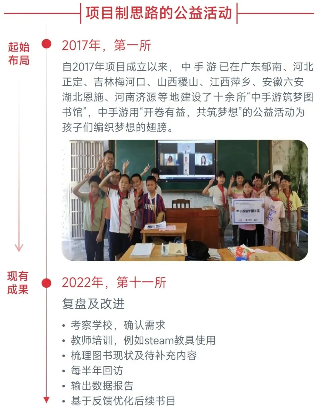中手游在公益活动、传播社会责任意识等方面履行社会责任。公益活动方面,企业以项目制的思路对待重点公益事件,典型案例为“中手游筑梦图书馆”,该项目中手游投入时间和资源均处于较高水平,并持续围绕项目进行复盘及优化,进而建立了完善的公益项目执行体系,长期来看项目的每一次落地都将带来更好的效果。中手游将公益活动作为企业的长期项目,并对其执行过程和效果持续负责。这一思路也值得更多公益项目借鉴,游戏企业可借助完善的公益活动经验,进而帮助新项目预警薄弱环节、完善重点环节的准备,全面推动更多公益项目的执行效果。传播社会责任意识方面,中手游通过内部招募志愿者的方式参与更多社会责任相关事件,这也有助于强化员工长期社会责任意识,现阶段志愿者占中手游员工数量的10%以上;此外,中手游在企业监管、传播传统文化、人才培养等方面的布局也有进展。