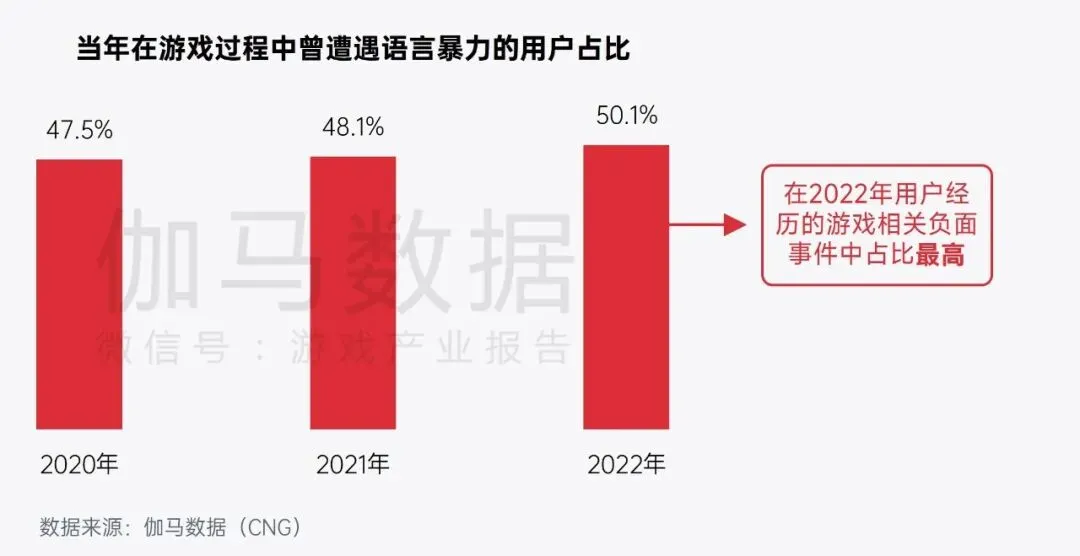 调研显示,游戏环境的净化力度有待加强,虽然产业内部已通过AI识别、人工巡查等方式定位、处罚语言暴力的发起者,但改善效果并不明显。伽马数据认为游戏环境需要得到产业内部更高的重视,对企业及产品而言,遭遇语言暴力通常会带来不佳的游戏体验,不利于用户长期留存;对于产业而言,由网络暴力引发的高热度负面事件近年来持续增加,而游戏产业对社交的依赖度较高,若难以形成更为有效的环境净化,或将增加上述事件出现在游戏产业的概率,进而为产业形象带来负面影响。