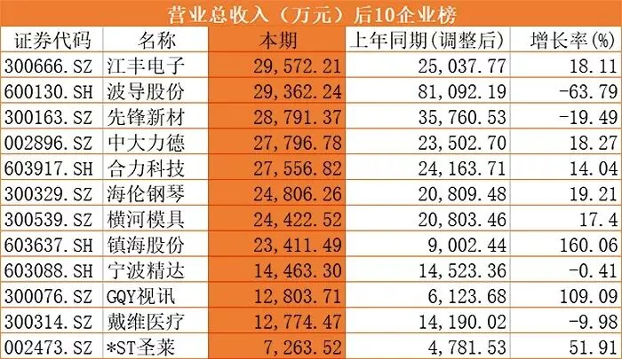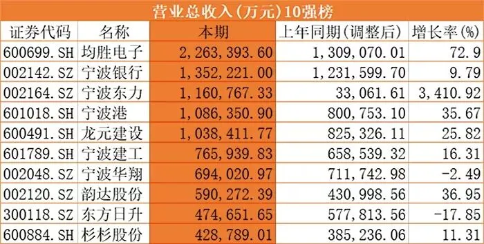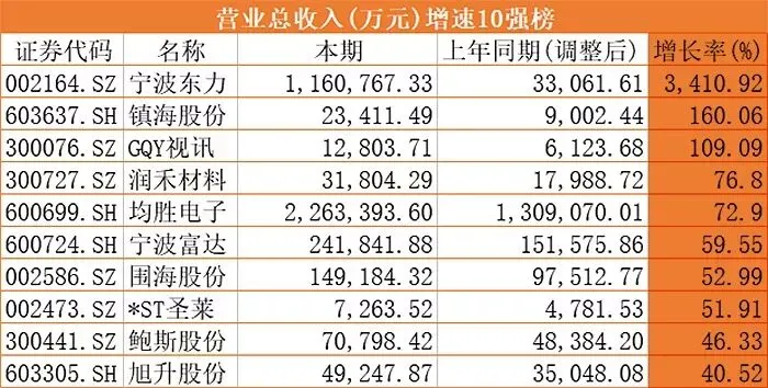 上半年营收增长最快的公司,也不是宁波人熟知的巨头企业,而是宁波东力,其营收同比增幅高达3411%!这家公司上半年遭遇了一个超级骗局,单从数据看,营收增速和利润增速天差地别,下面还会提到。