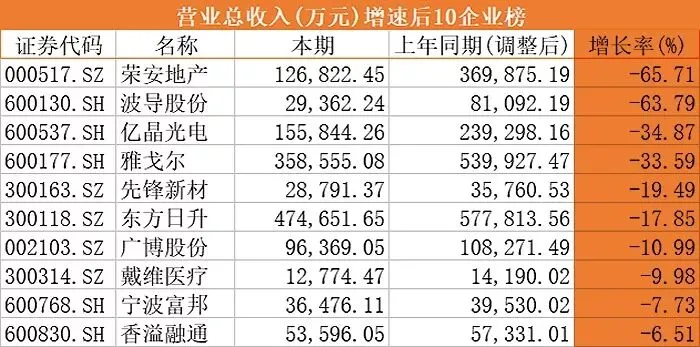 而营收排名最末的*ST圣莱,上半年营收才7000多万元,是全部73家公司中唯一营收没过亿的。