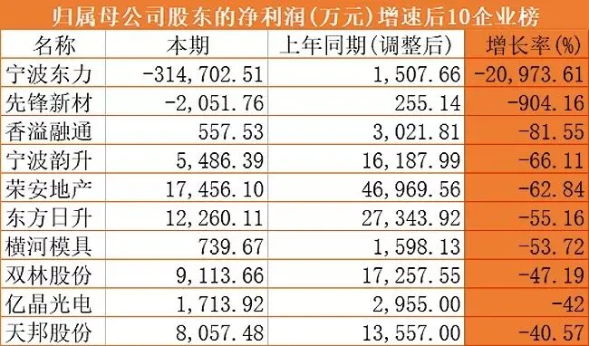 宁波东力也因此成为宁波A股上市公司中,利润跌幅最高的一家,上半年归母净利润跌幅达到了吓人的20974%!