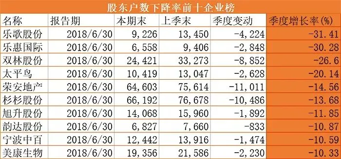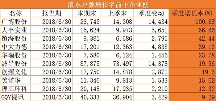 环比一季度,宁波辖区上市公司中股东户数增加的个股有28只,广博股份和波导股份两只股票的股东户数增加最多,均超1万户。而股东户数下降的个股则达到45只,其中荣安地产、杉杉股份、双林股份、宁波港等4只股的降幅均超1万户。