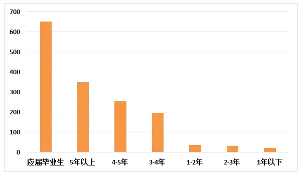 本次大会对求职者的工作年限数量统计显示:应届毕业生为主要群体,占比超过42%。体现了变局之下,毕业生大量涌向人才就业市场,就业急迫且面临巨大困难。而在职人员更多选择工作的稳定性,跳槽与跨行业求职意愿不强,只有工作3-5年以上的行业精英愿意寻求更好的发展。