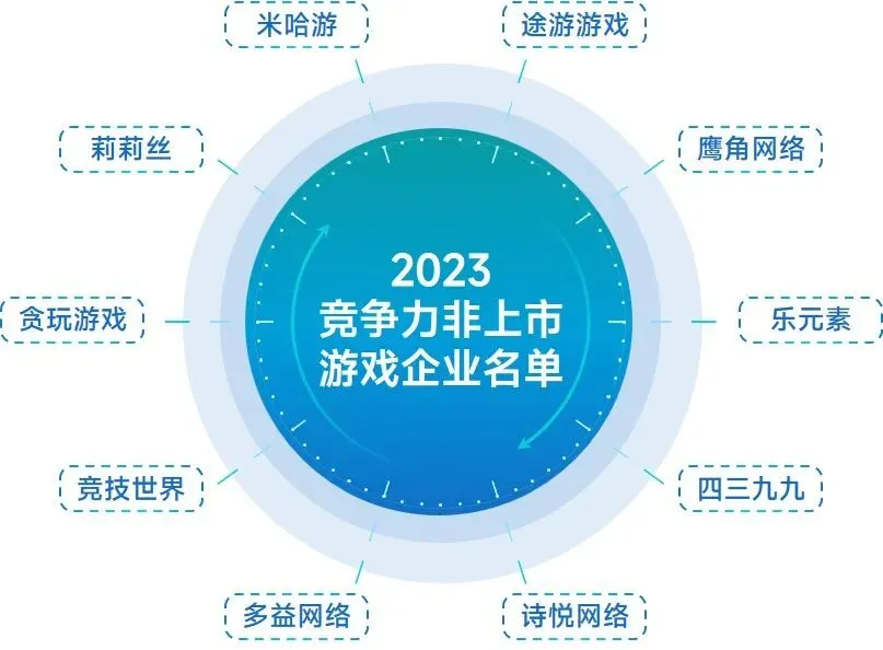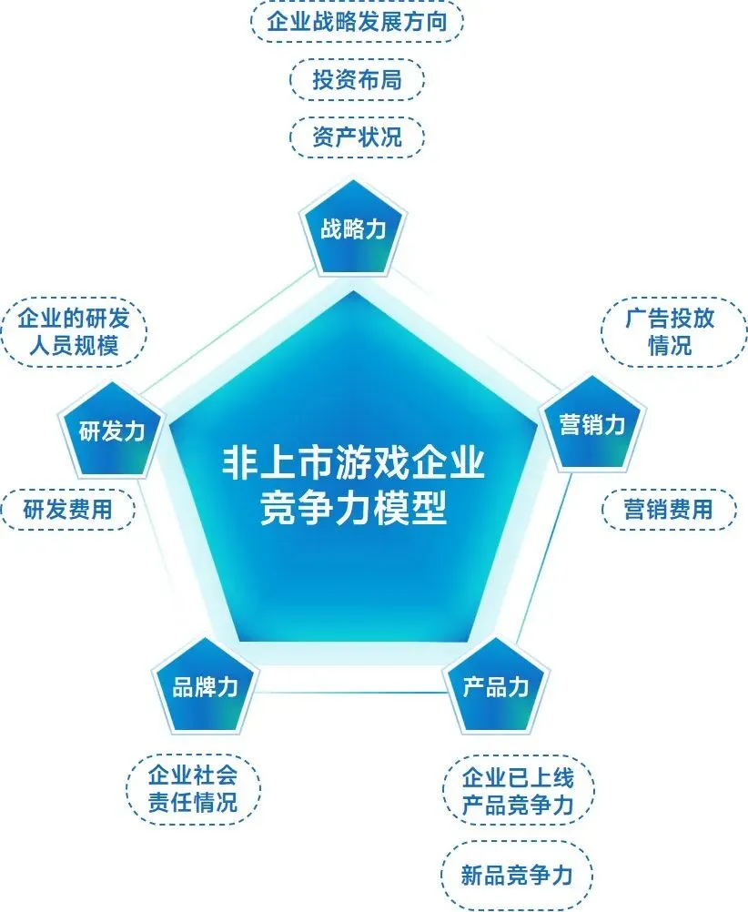 伽马数据从战略力、研发力、营销力、品牌力和产品力五个维度对非上市游戏企业进行评估,结果显示以下非上市游戏企业在游戏市场的竞争中具有优势。