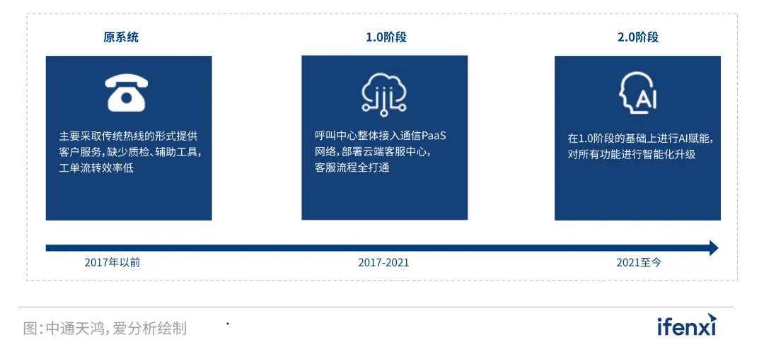 客服体系智能化转型,中通天鸿助力某头部木门企业服务全面升级 某公司(以下简称“该公司”)是国内木门制造的领军企业,集居室门研发、生产、销售、服务于一体,在全国拥有吉林、山东等六大生产基地,26家工厂,在1100多个城市拥有2200余家专卖店。与此同时,该公司还积极开拓线上销售渠道,打造全渠道立体化的营销网络布局,并进驻了天猫、京东、苏宁、国美等多个电商平台。近年来,随着市场竞争的不断激烈以及消费者需求的不断变化,该公司逐渐意识到传统以产品为核心的市场策略已经难以维持自身行业领先地位,因此,其选择向以服务为核心的新型市场策略转型,通过提高自身服务质量,打造差异性优势,并以此来带动营销,实现业务增长。然而,由于现有销售网络范围较大以及原有客户服务体系较为落后等原因,导致转型效果不佳,业绩提升较慢,具体原因如下。一是分店“各自为政”,总部把控能力不足。该公司在全国拥有数千家直营和加盟门店,而原有客服体系无法将各地区店铺产生问题进行统一处理,并且由于缺少对地区店铺有效监管手段,导致地区店铺各自为政,总部对服务流程和服务质量也难以把控,品牌口碑受损严重。二是系统老旧,业务需求难以满足。原有客服体系,采用的是传统热线的形式进行客户服务,同时采取人工的方式进行工单的全流程运转。一方面,导致工单无法精准流转到相应的技能组坐席,专家资源无法被有效利用,客户需求也难以被及时满足;另一方面由于缺少完善的外呼回访系统和工单评价工具,管理层也无法根据服务结果对后续服务流程进行改善。三是数据分散,服务效率难以提升。原有客服系统无法有效与CRM系统、全国业务系统等内部系统进行打通,导致客服人员无法统一处理来自多渠道的客户信息和订单信息等数据,对用户身份也无法进行及时的有效识别,服务效率低。 为有效解决上述问题,该公司对于构建更加智能化的客户服务体系产生了巨大需求,而中通天鸿作为专业智能客服解决方案提供商,凭借多年互联网+产业的深度服务经验以及成熟的产品功能、丰富的数据模型等关键因素,并为公司客服发展做了明确可行的整体规划,经过多方调研和验证中通天鸿成为最终选择。中通天鸿(北京)通信科技股份有限公司是一家客户中心解决方案提供商,致力于利用人工智能、大数据等技术为企业提供全渠道客户服务运营系统,其研发的智能通信PAAS平台、云呼叫中心平台、智能机器人平台等,目前已服务近百家全球500强企业客户。针对目前所存在的问题,中通天鸿于2017年提供了1.0解决方案,随后又于2021年开始了2.0阶段的合作,将1.0的功能进行全面智能化升级。图 19:该公司木门客服系统升级过程 统一管理,有效保障服务质量。一方面,通过将各地区店铺所产生的客户问题进行统一归纳处理,总部将客户所有问题进行了有效归集,有效把控服务质量。另一方面,中通天鸿提供的总分支管理功能,帮助该公司将各地区客服系统与总部系统进行打通,通过逐级控制管理权限,将管理权集中到总部,使一线服务质量得到规范,并可分区域、分角色查看统计数据,便于总部管理和运营,达到提供高效且统一的服务的目的。功能升级,有效满足业务需求。(1)系统全面升级,服务、品牌双提升。2017年10月,中通天鸿为该公司提供的1.0系统正式上线。第一,全渠道建设,客户反馈渠道不再只是局限于400电话一种形式,微信、网页等多种形式全渠道均可接入,通过云端部署全渠道客服中心,使坐席可以通过呼叫中心、IM统一受理客户线上线下的诉求,显著提升服务效率及客户体验感。第二,针对传统热线无法全量满足客户咨询需求的问题,在1.0阶段,中通天鸿将客户原有呼叫中心系统整体接入通信PaaS网络,通过将互联网通信所需的能力打包成API和SDK接口,一站式提供给客户,快速调用全国通信资源。(2)人工智能入局,服务全面提质增效。第一,在1.0阶段实现全渠道统一接待后,坐席人员工作量剧增,因此在2.0阶段提供了智能客服机器人,通过所具备的语义识别等技术,对客户所提的反馈保修、意见建议、投诉等问题进行前置处理,大幅降低人工坐席基础工作量,提升整体工单流转效率;在服务确认完成后,工单将自动流转到回访环节,系统将自动向客户发送回访短信或由机器人进行自动外呼回访,并将回访的结果同步到工单信息中。第二,为实现全量质检,中通天鸿在2.0阶段为该公司提供了智能语音质检以及智能文本质检功能,分别对用户来电以及在线会话记录进行全量质检,有效避免违规风险,提升服务质量和客户体验感。第三,针对缺乏产品培训体系而导致服务满意度降低这一问题,中通天鸿未来将为坐席人员提供实时智能辅助功能,在面对客户咨询时,自动生成解决方案,帮助坐席人员及时对客户进行回复,大幅降低对客服人员的要求,有效提高客户满意度。系统互通,大幅提升服务效率。针对系统割裂而导致的服务效率低下问题。中通天鸿帮助该公司将客服系统与CRM系统、全国业务系统等内部系统进行打通,通过将电话号码、微信Open ID、用户ID等来自多渠道的用户数据关联到统一的CRM上,实现用户的统一识别管理,大幅提升服务效率。除此之外,为满足服务再营销需求,中通天鸿在2.0阶段提供了智能工单管理功能,通过将工单信息进行记录留存以及管理,并基于工单