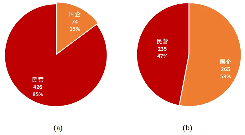 中国新经济企业500强(a)与中国企业500强(b)类型比较