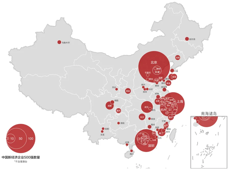 新经济500强企业城市分布