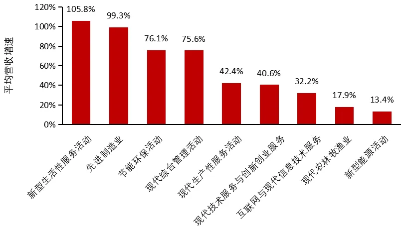 新经济500强企业各行业领域平均营收增速