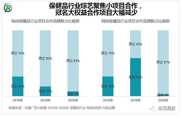 保健品行业电综和网综均以小项目合作为主,电综和网综在2020年持续加大小项目、减少冠名大项目合作。