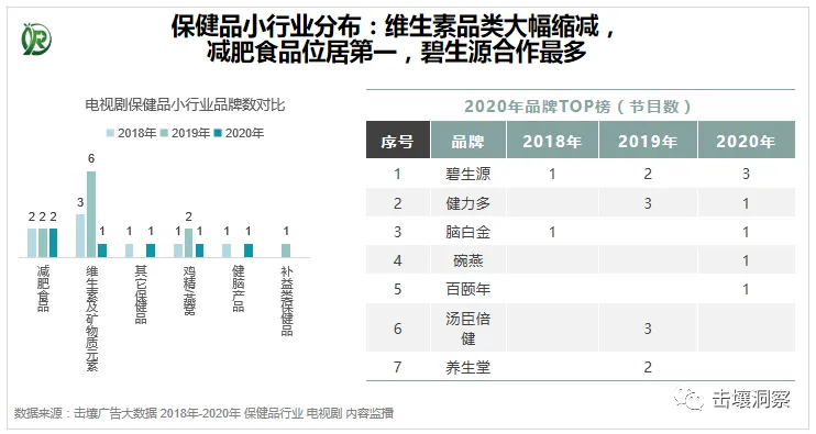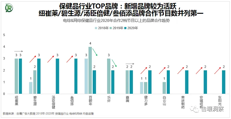 2020年内容领域,保健品行业合作品牌大幅增长,新品牌涌入保持市场活跃度。