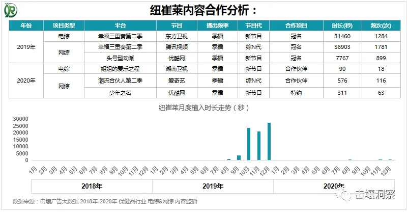 纽崔莱2019年大权益冠名网综节目,2020年以二级权益身份合作主流平台,聚焦音乐类节目。