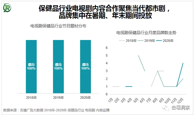 保健品行业电视剧内容合作聚焦当代都市剧,品牌集中在暑期、年末期间投放。以独播剧合作为主,各平台合作品牌有所减少,北京卫视最受品牌青睐。维生素品类合作品牌缩减,减肥食品品类跃居第一,重点品牌碧生源聚焦家庭、职场类现实主义题材电视剧。-END-