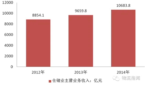 2012-2014年我国仓储业主营业务收入:亿元