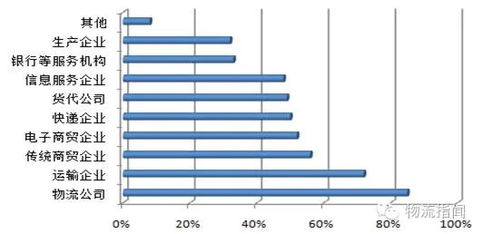 另外,问卷调查结果显示,虽然物流公司和运输企业仍然是物流园区入驻最多的企业。但值得注意的是,随着电子商务的快速发展,超过50%的物流园区有电子商务企业和快递企业入驻。如下图所示: