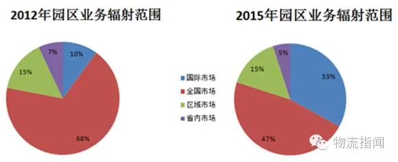 2012年和2015年物流园区业务辐射范围对比