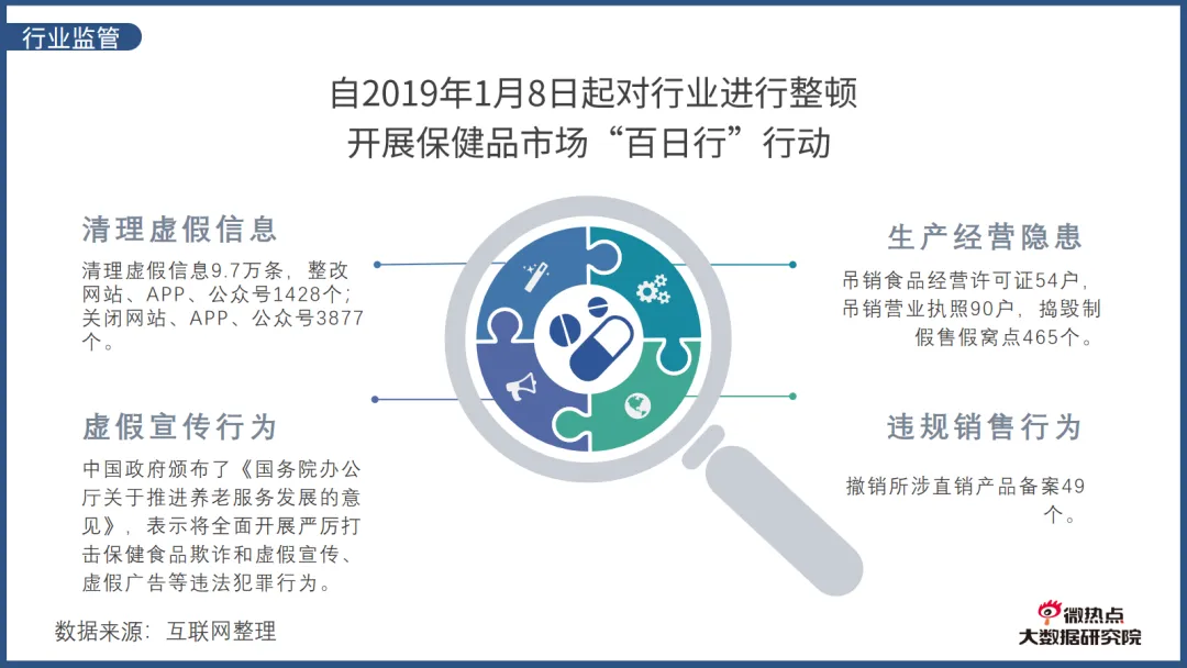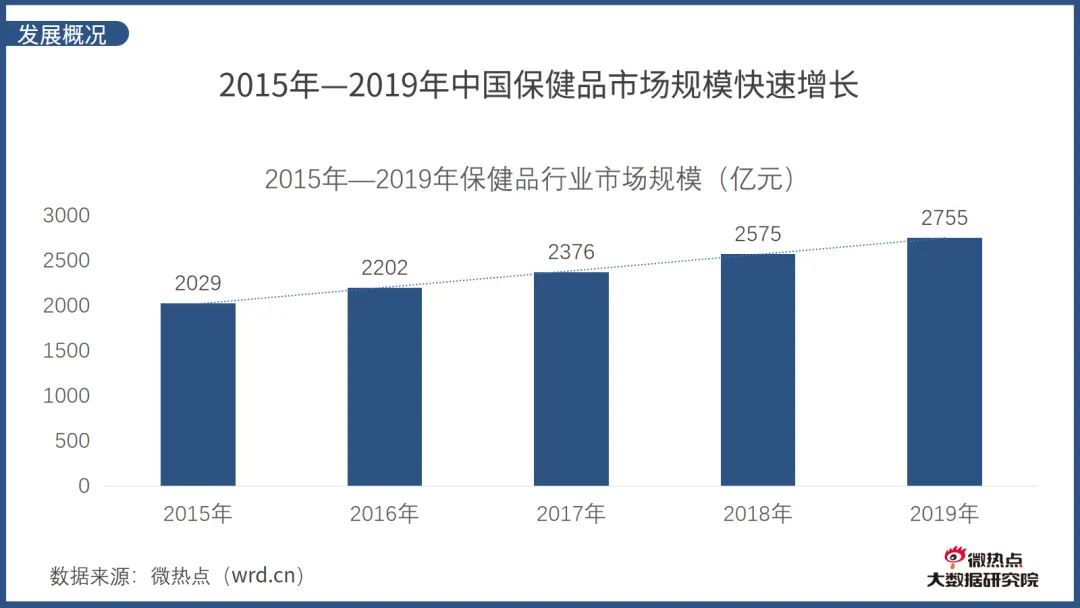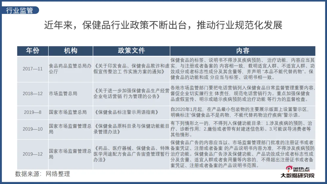 为了更好的了解我国保健品市场的发展,微热点大数据研究院推出《保健品行业网络关注度分析报告》。《报告》从保健品行业发展概况、传播概况、用户画像、品牌关注度、行业监管等方面解读保健品行业网络关注度。以下是报告详情: