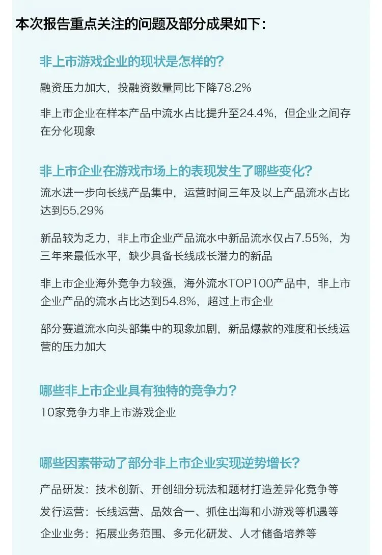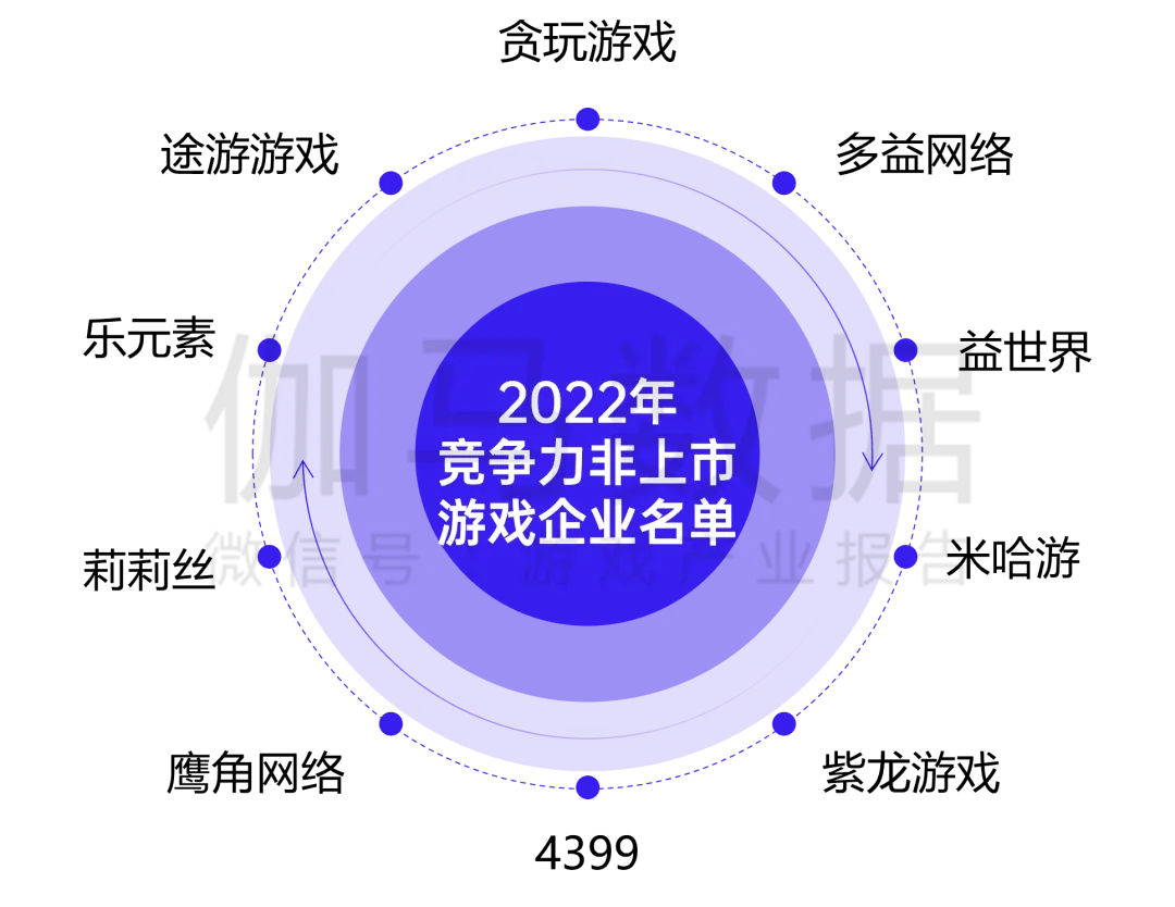 伽马数据根据产品研发、运营、发行等多方面表现评选市场表现较好的非上市游戏企业,以下非上市游戏企业在游戏市场的竞争中具有优势。