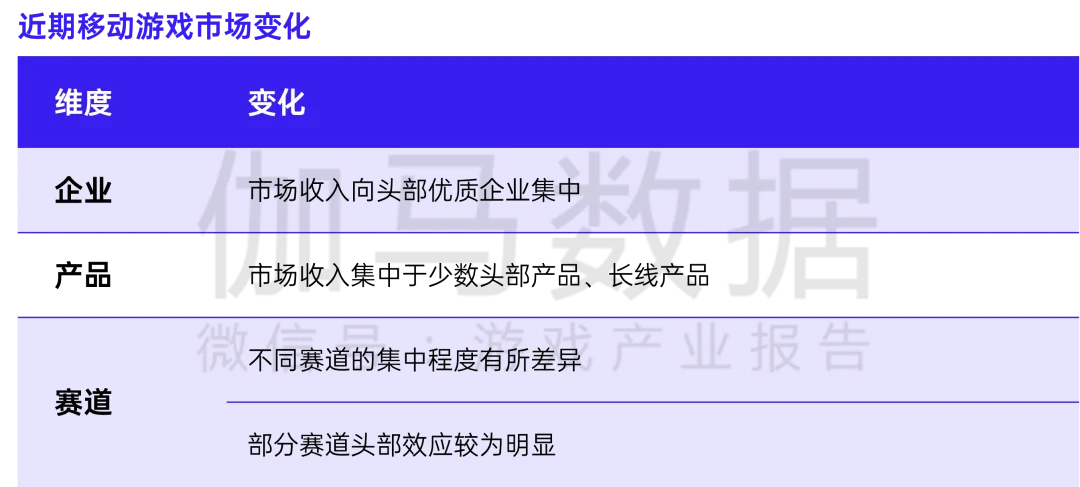 随着游戏用户渗透率趋近饱和,移动游戏市场进入存量竞争阶段,产业整体的集中度随之上升,具体表现在企业、产品和赛道等多个方面。2022年1-6月新品竞争激烈,在市场中已有相同玩法的长线头部产品的前提下,新品实现长线运营对产品质量的要求较高。