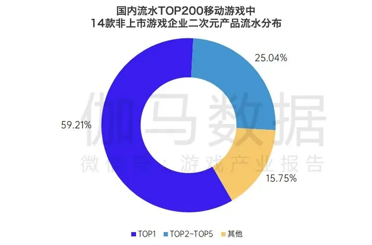 注:流水分布指非上市游戏企业二次元游戏总流水的比例。