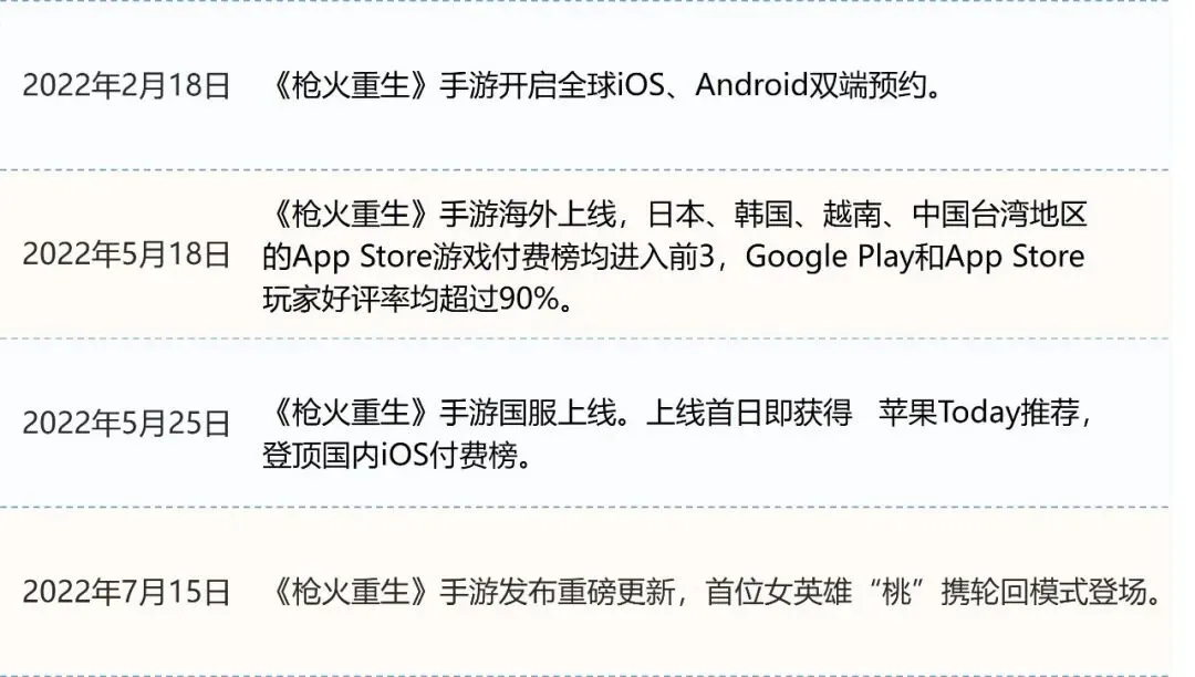 多益网络在对国内渠道深耕细作的同时,也在不断开拓新的市场空间。其打造的首款国风冒险闯关FPS游戏《枪火重生》成为近年走出国门、带动文化出海的热门产品之一。2022年5月18日,《枪火重生》手游海外版上线,进入日本、韩国、越南、中国台湾地区App Store游戏付费榜前3,Google Play和App Store玩家好评率均超过90%;2022年5月25日《枪火重生》手游国服正式上线,实现从海外回到国内、从PC端到移动端的跨越。目前,《枪火重生》PC版全球销量突破250万份,在国际平台Steam上一直保持着94%以上的好评率;手游版上线即获得苹果Today推荐,并持续在App Store、Google Play、TapTap等多个游戏平台获得高分。