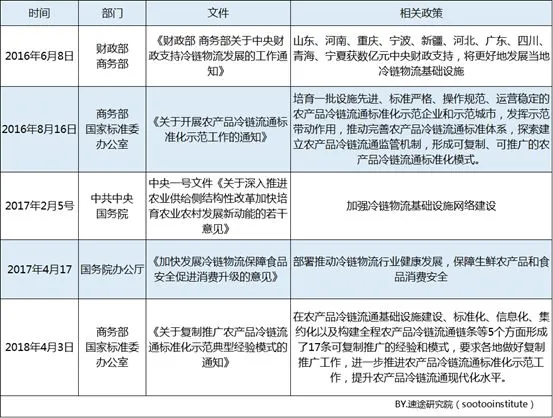近年来,国家对冷链物流行业持续给予高度关注,并相继出台政策予以扶持。2017年2月5日中央一号文件明确了要加强冷链物流基础设施网络建设。4月17日国务院办公厅印发《加快发展冷链物流保障食品安全促进消费升级的意见》,提出推动冷链物流行业发展,保障生鲜食品消费安全。2018年4月3日,商务部和国家标准委办公室印发《关于复制推广农产品冷链流通标准化示范典型经验模式的通知》,预在全国推广冷链流通的标准化示范工作。