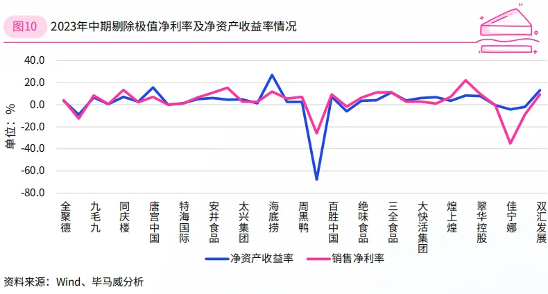 而净资产收益率方面,海底捞则以27.0%成为样本企业中2023年上半年净资产收益率最高的企业。